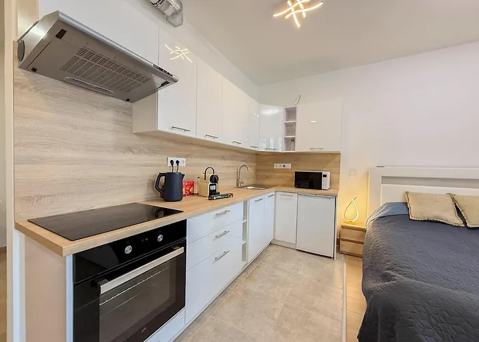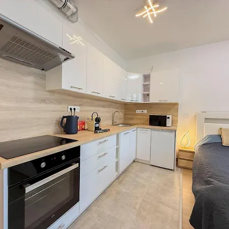 El River Danube Flat W Balcony And Free Guarded Parking dispone de una cocina bien equipada para el autoservicio. La estación de metro más cercana es Gyöngyösi utca, situada a unos cuantos pasos de este apartamento.
